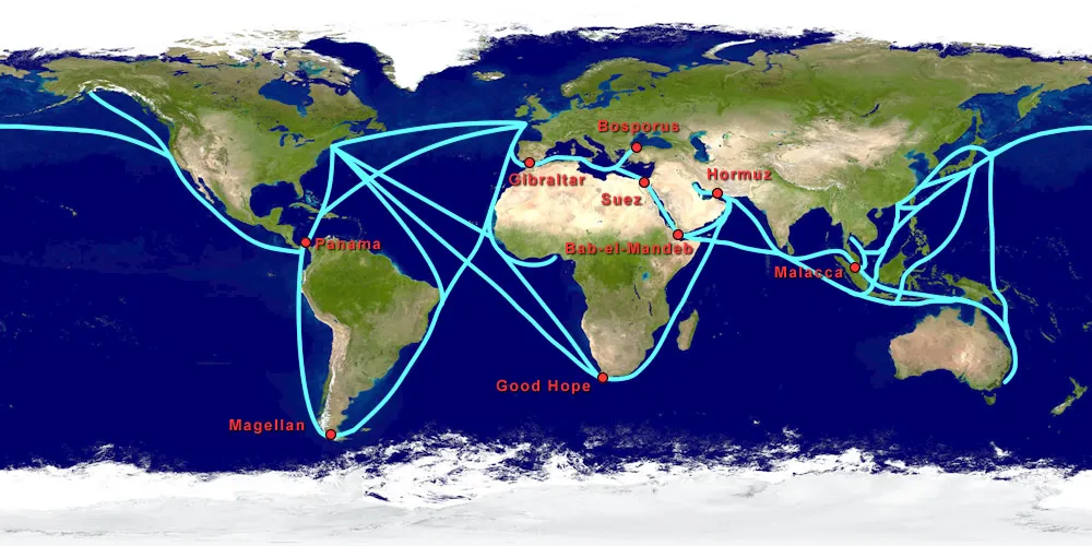 El canal de Suez y el canal de panamá son 2 canales estratégicos para el tráfico marítimo internacional.